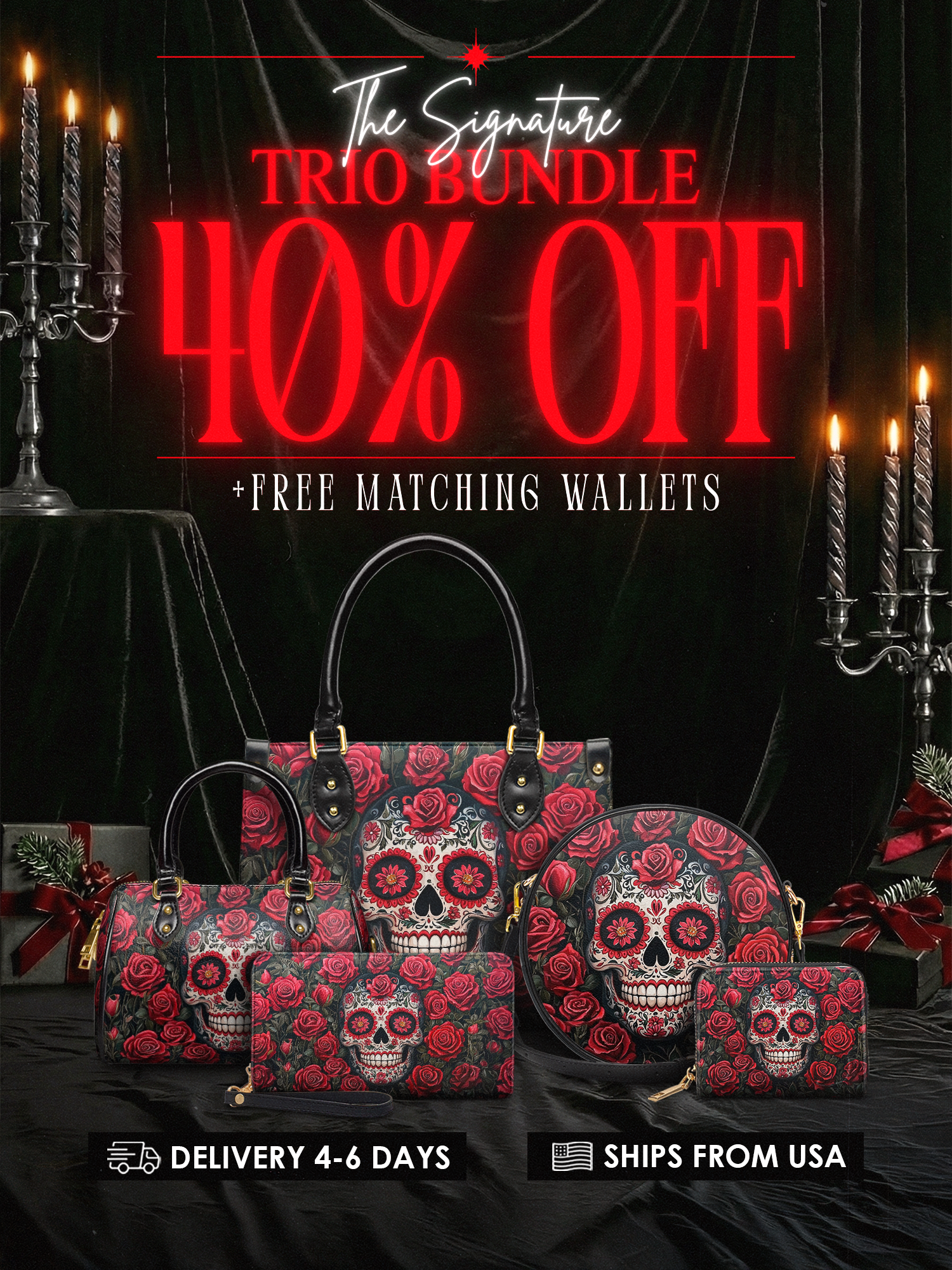 "La Roja" The Signature Trio Bundle (Small Leather Handbag)