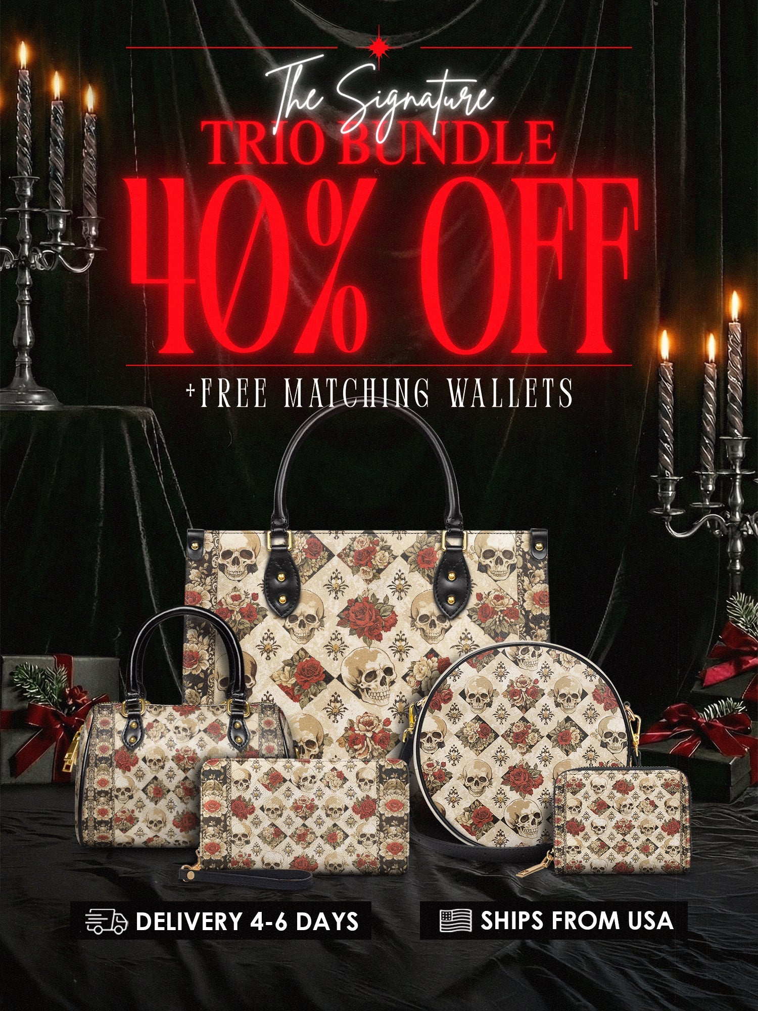 "Mournaire" The Signature Trio Bundle (Small Leather Handbag)